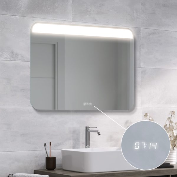 Digital Led clock in white with the possibility of mounting almost anywhere on the mirror, display size 2x5cm. The clock displays the time with the mirror switch option or when the main light is switched on if the mirror does not have a switch.