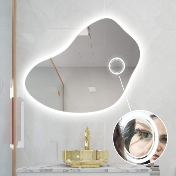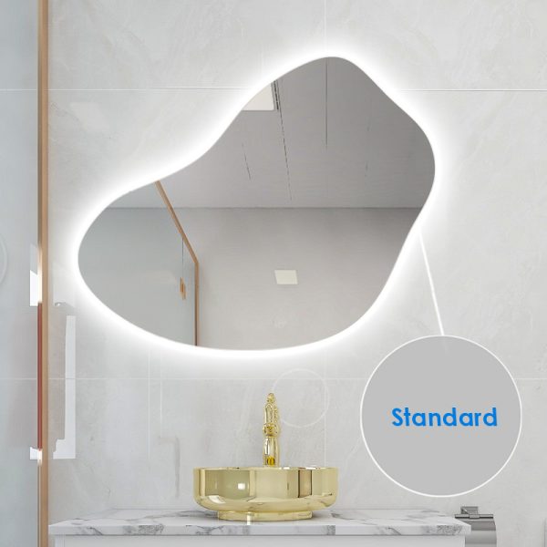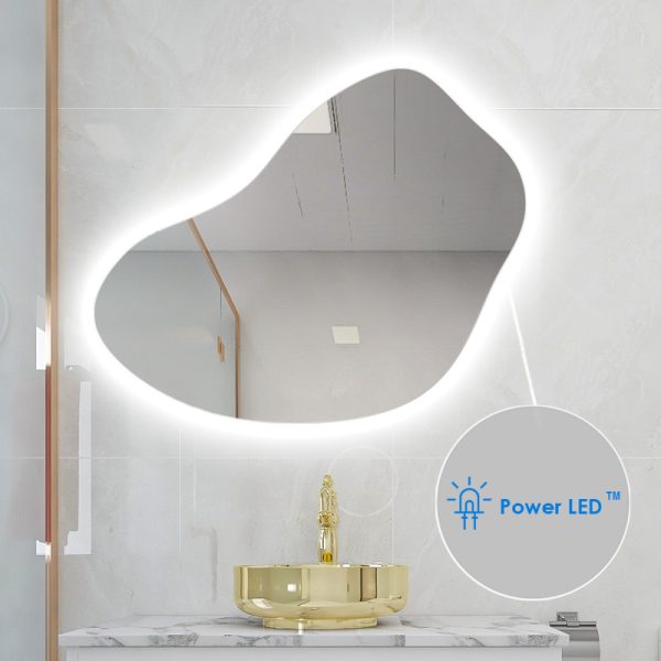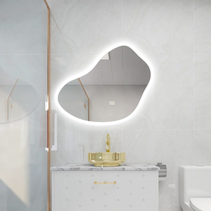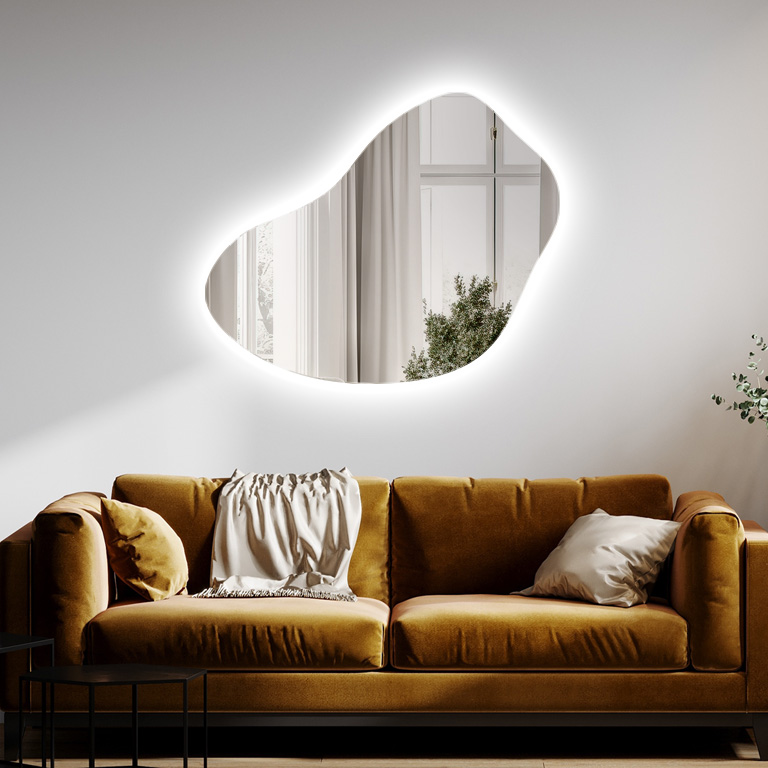 The Grano Ambiente illuminated mirror is made to individual order. It is up to you to decide from which side and at what distance from the edge the vertical cut is to be made. This makes it easy for you to compose your own arrangement. You will make maximum use of the available space – the mirror will fit perfectly against the wall. The unusual shape makes the mirror stand out from its surroundings and focuses the energy of the interior.