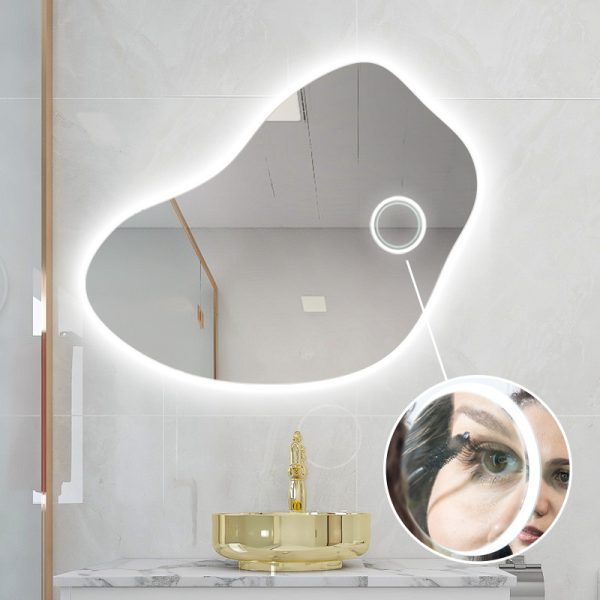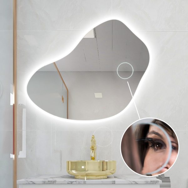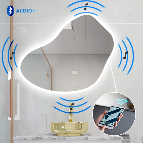 The advantage of the LED bathroom mirror is the ambient lighting that provides the room with a slight twilight giving an intimate and relaxing atmosphere. Also select practical extras such as a switch with brightness regulator for changing the intensity of the lighting, a Bluetooth speaker with which to play music in the bathroom or an anti-steaming heating mat.