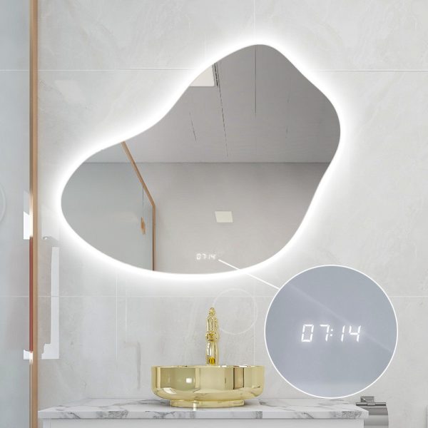 Digital Led clock in white with the possibility of mounting almost anywhere on the mirror, display size 2x5cm. The clock displays the time with the mirror switch option or when the main light is switched on if the mirror does not have a switch.