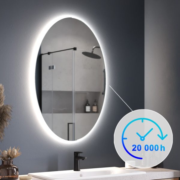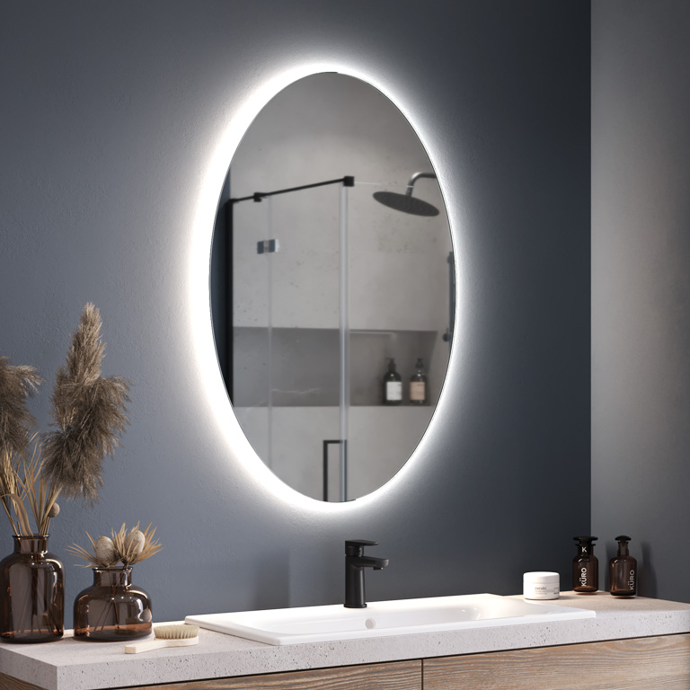 You will use the oval LED mirror in a stylish bathroom, bedroom or dressing room. You can also arrange the space in an interesting way by hanging two mirrors side by side – for example in toilets with double sinks. The elongated shape and the additional lighting will make it easier for you to choose your hairstyle or to do your make-up. With the Simple Oval Ambiente illuminated mirror, you can let yourself relax. The energy-saving LED strip provides soft, eye-pleasing light. It is ideal for a relaxing bath or watching TV in the living room.