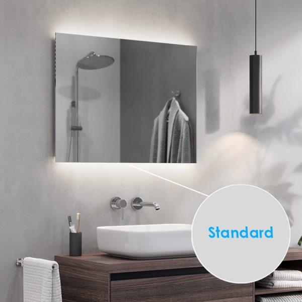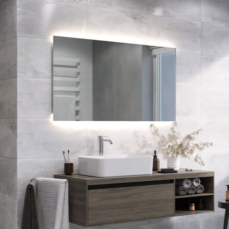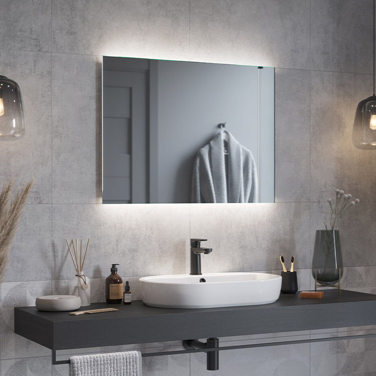 The Shine bathroom mirror is characterised by an extremely impressive Ambiente LED backlight, which clearly illuminates the wall on which the mirror is mounted.