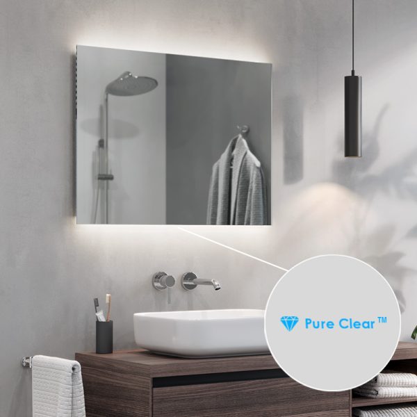 Pure Clear™ is a mirror that provides very high resistance to edge and spot corrosion. Additionally, it has been manufactured with respect for the planet and humans. Thanks to a state-of-the-art manufacturing process, it is free of lead and organic solvents, and its under-lighting eliminates the effect of over-lighting when LED strips are used.