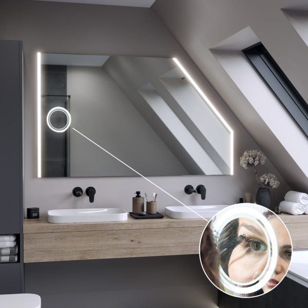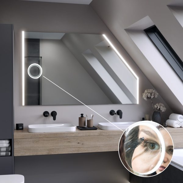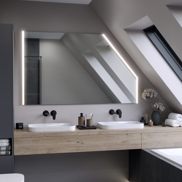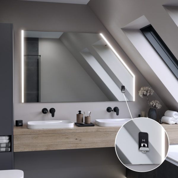 The Kore LED Slim bathroom mirror is an unusual accessory that will accentuate the design of your attic bathroom. You can easily manage the installation of the mirror thanks to the installation instructions included with the product.