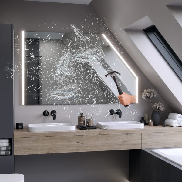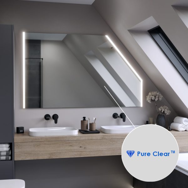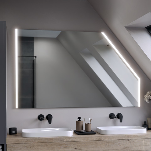 A mirror that provides very high resistance to edge and spot corrosion. In addition, it has been manufactured with respect for the planet and humans. Thanks to a state-of-the-art manufacturing process, it is free of lead and organic solvents, and its under-lighting eliminates the overexposure effect when LED strips are used.