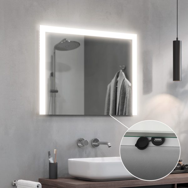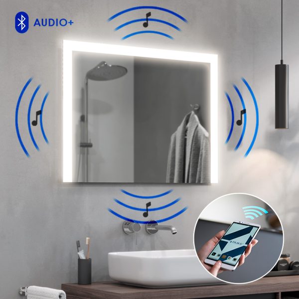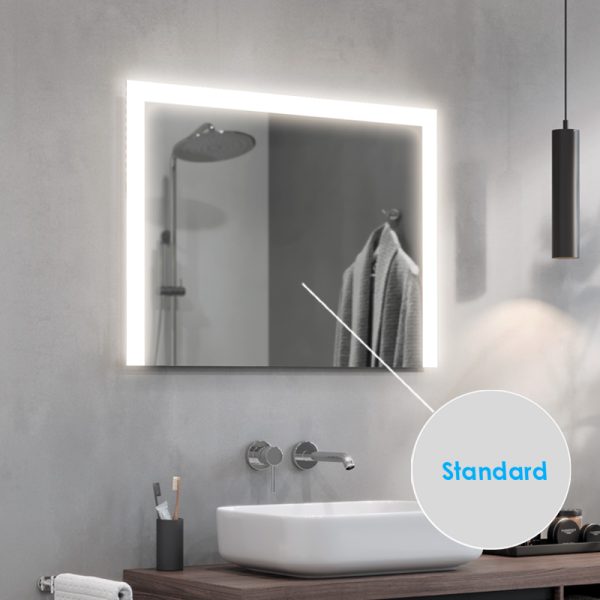Configure the mirror to suit your needs. Choose from a range of functional extras, including an enhanced light, safety film, induction charger, Bluetooth speakers, brightness regulator or heating mat.