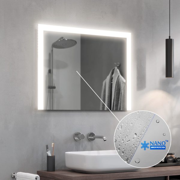 A mirror that provides very high resistance to edge and spot corrosion. In addition, it has been manufactured with respect for the planet and humans. Thanks to a state-of-the-art manufacturing process, it is free of lead and organic solvents, and its under-lighting eliminates the overexposure effect when LED strips are used.
