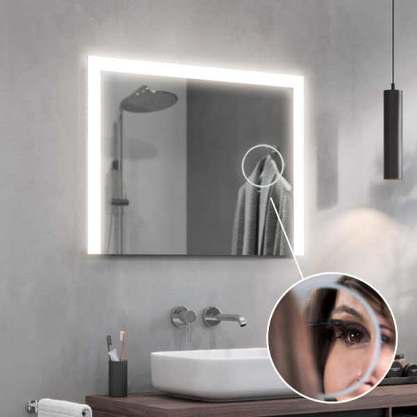 The magnifying mirror is one of the most practical pieces of bathroom equipment. The mirror has an optimum magnification of x3 or x5 and a diameter of 14cm. Smoothly integrated into the surface of the mirror, it forms a unified whole with it.