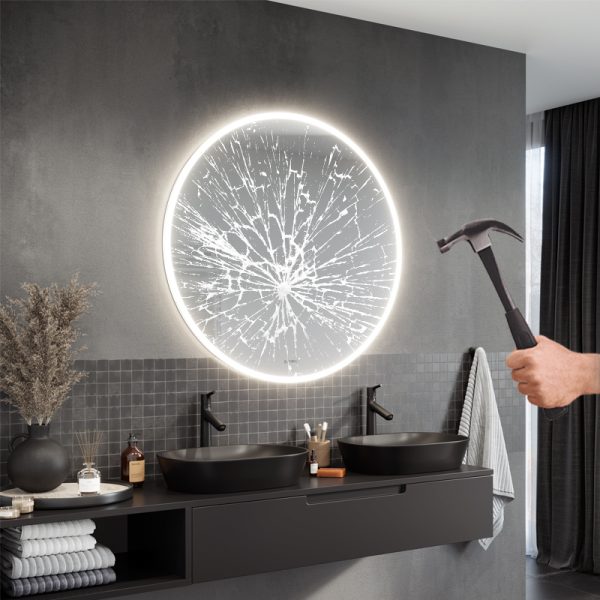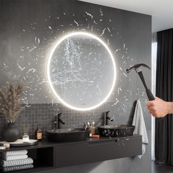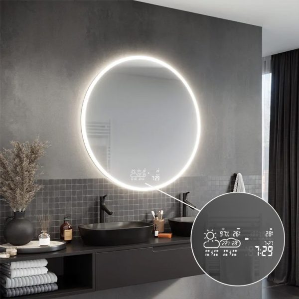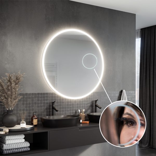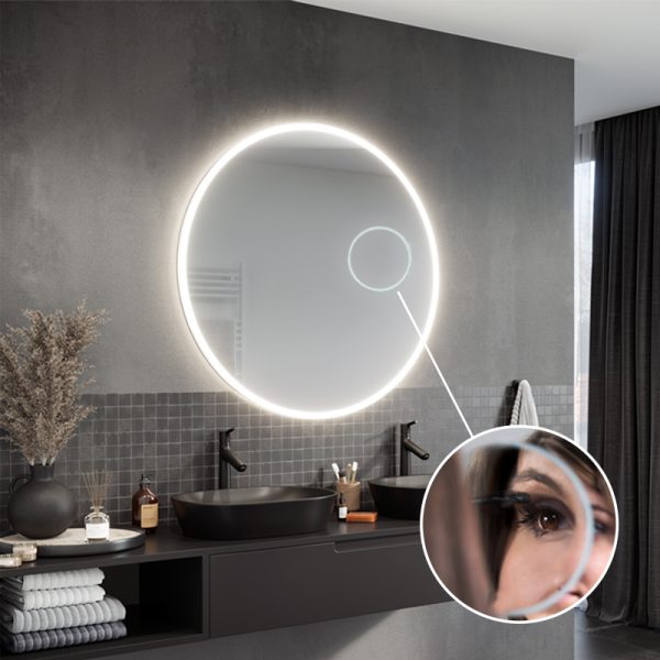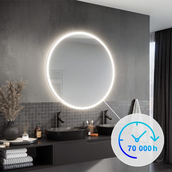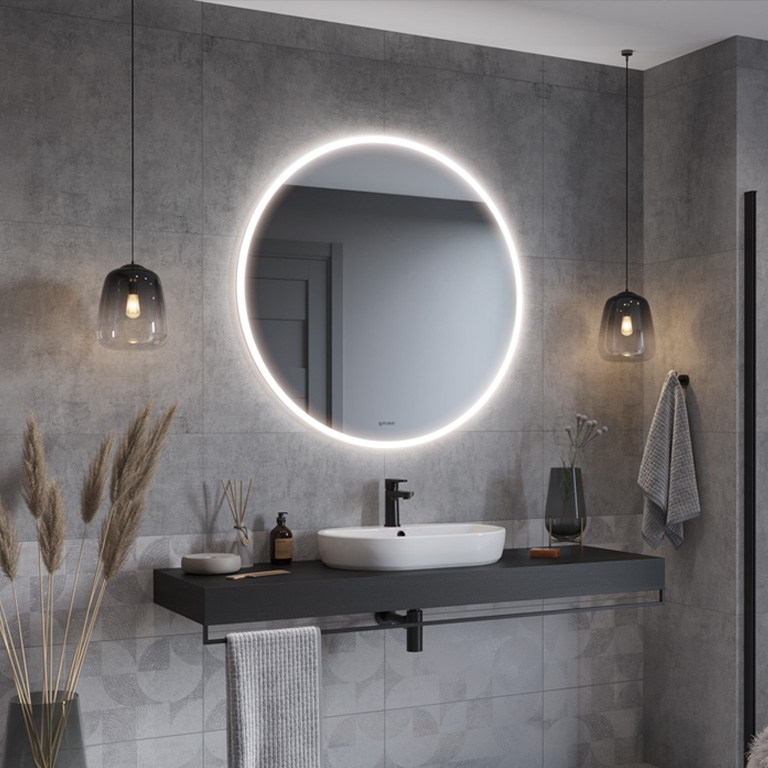 The Volante Slim round illuminated mirror is the perfect solution for modern bathrooms with character. It will illuminate the interior wonderfully. Depending on the size you choose, it will work well in both large and small rooms. It is also an excellent option for small hallways with wardrobes, where it can often be dark. Thanks to the large amount of light provided by the LED strip, the Volante model can become part of a lady’s dressing table. It will give the room a luxurious feel.