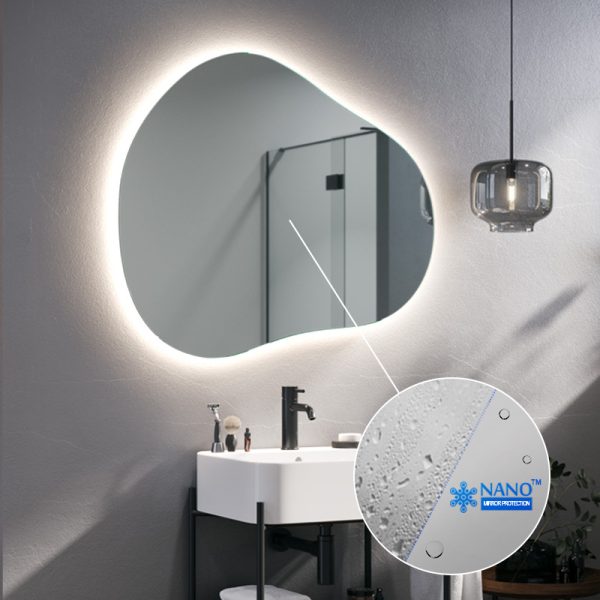 A mirror that provides very high resistance to edge and spot corrosion. In addition, it has been manufactured with respect for the planet and humans. Thanks to a state-of-the-art manufacturing process, it is free of lead and organic solvents, and its under-lighting eliminates the overexposure effect when LED strips are used.