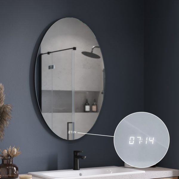 Digital Led clock in white with the possibility of mounting almost anywhere on the mirror, display size 2x5cm. The clock displays the time with the mirror switch option or when the main light is switched on if the mirror does not have a switch.