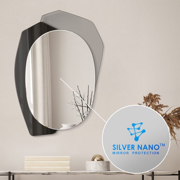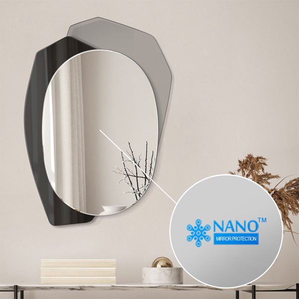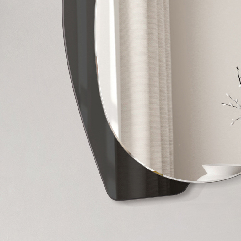A glass back panel consisting of two parts, mounted on the back of the mirror