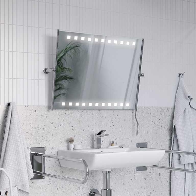 The Med ST Quadron LED model was developed for people with disabilities, as well as the elderly and those with mobility problems. It also makes it easier for all bathroom users to browse comfortably in the mirror surface.