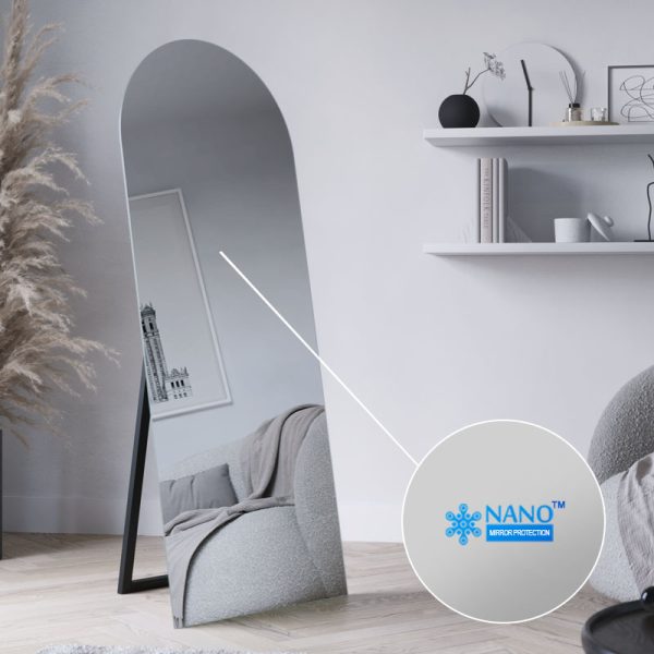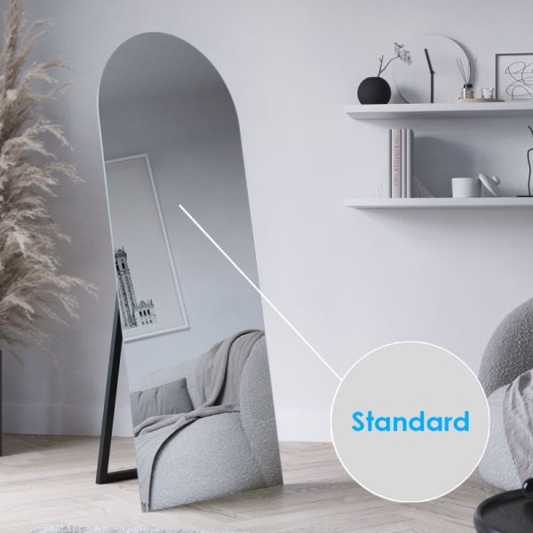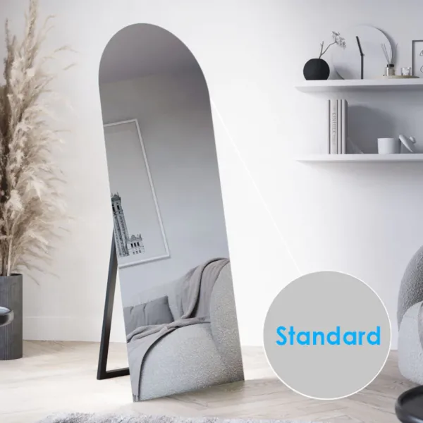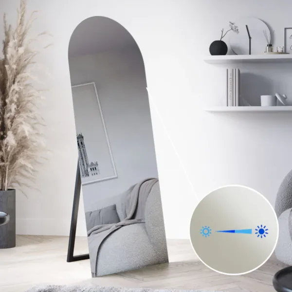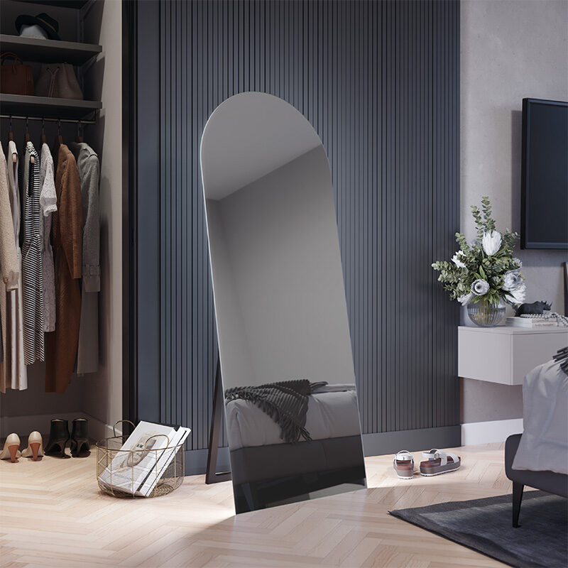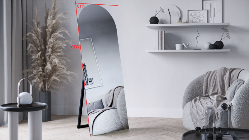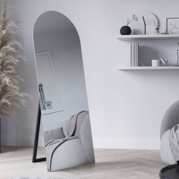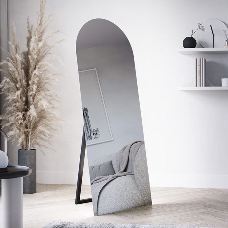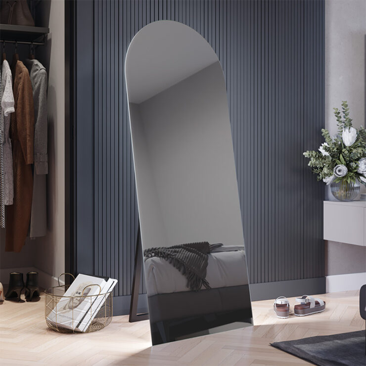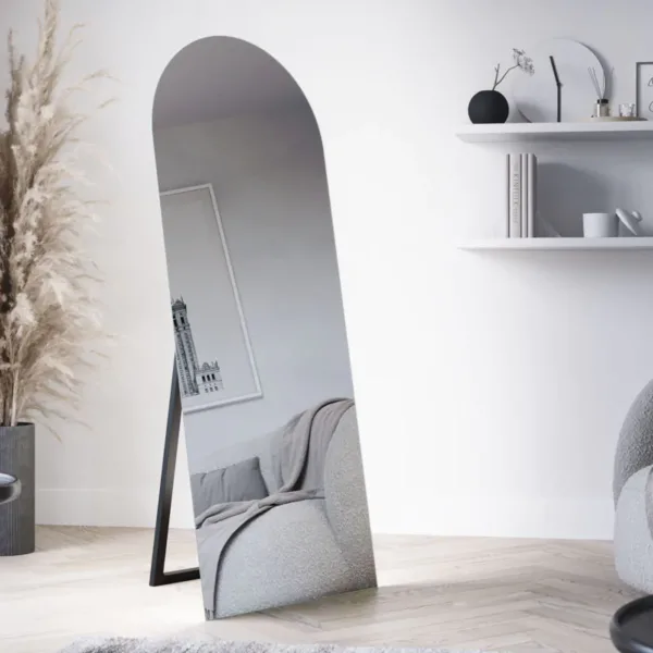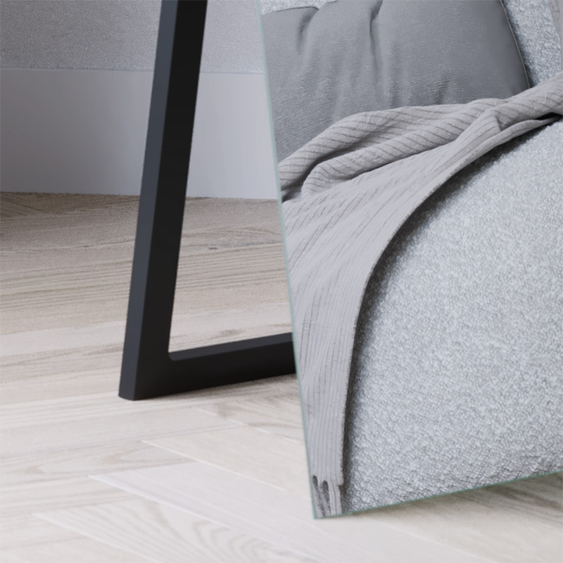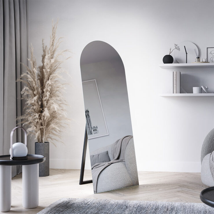 Portano Ambiente standing mirror. The elegant and minimalist standing mirror is the perfect choice for any interior. Its slim, rectangular form with rounded corners fits harmoniously into living room, bedroom, dressing room or hallway arrangements. Its stable construction and universal design make it not only a practical addition, but also a stylish decorative element.