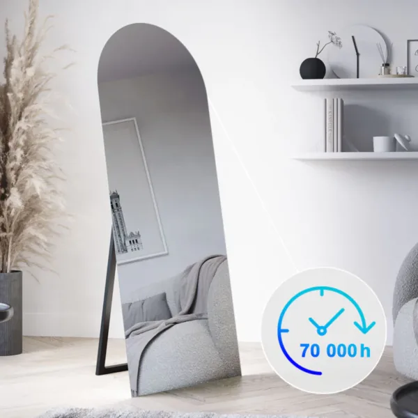 Looking for a large LED mirror in which you can easily see the reflection of your entire silhouette, then check out our proposal – the Portano Ambiente standing mirror. It is a stylish decoration and a functional piece of furniture that will accentuate the modern design of your home.