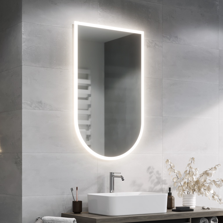 Een spiegel die zeer goed bestand is tegen rondom- en puntcorrosie. Bovendien is hij gemaakt met respect voor de planeet en de mens. Dankzij een geavanceerd productieproces is hij vrij van lood en organische oplosmiddelen, en de onderbelichting elimineert het effect van overbelichting bij gebruik van LED-strips.