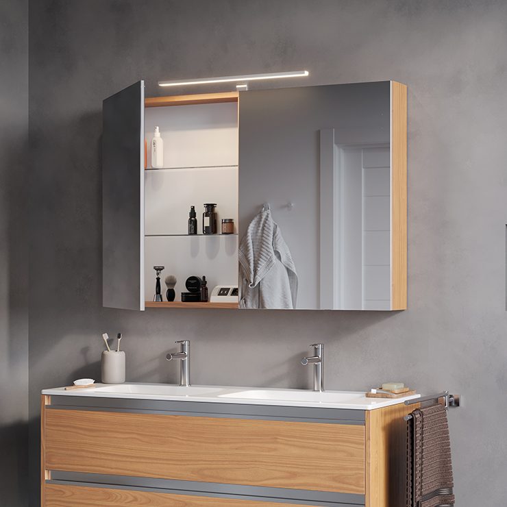 De badkamerkast met LED spiegel en wandlamp verlichte spiegelkast is een zeer functionele en innovatieve oplossing voor je badkamer. Dankzij het innovatieve ontwerp kun je er niet alleen je cosmetica in opbergen, maar ook elke dag de kamer en je gezicht verlichten.