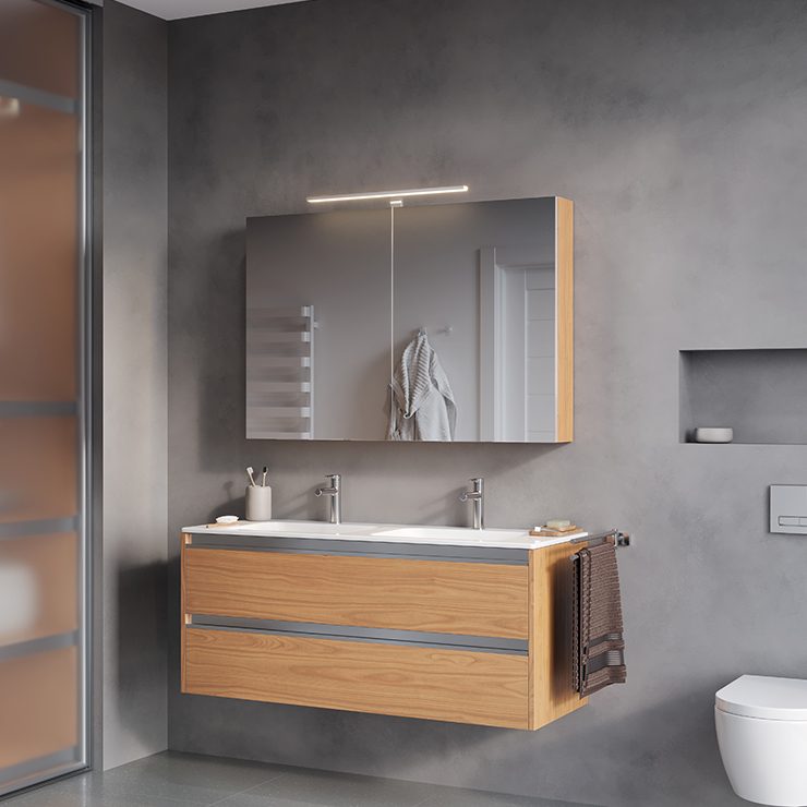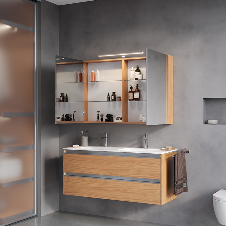 RUKE staat al meer dan 30 jaar synoniem voor elegantie en functionaliteit. Kies voor een luxueuze en originele spiegel met LED-verlichting in een houten frame, die in het oog springt en karakter geeft aan je interieur.