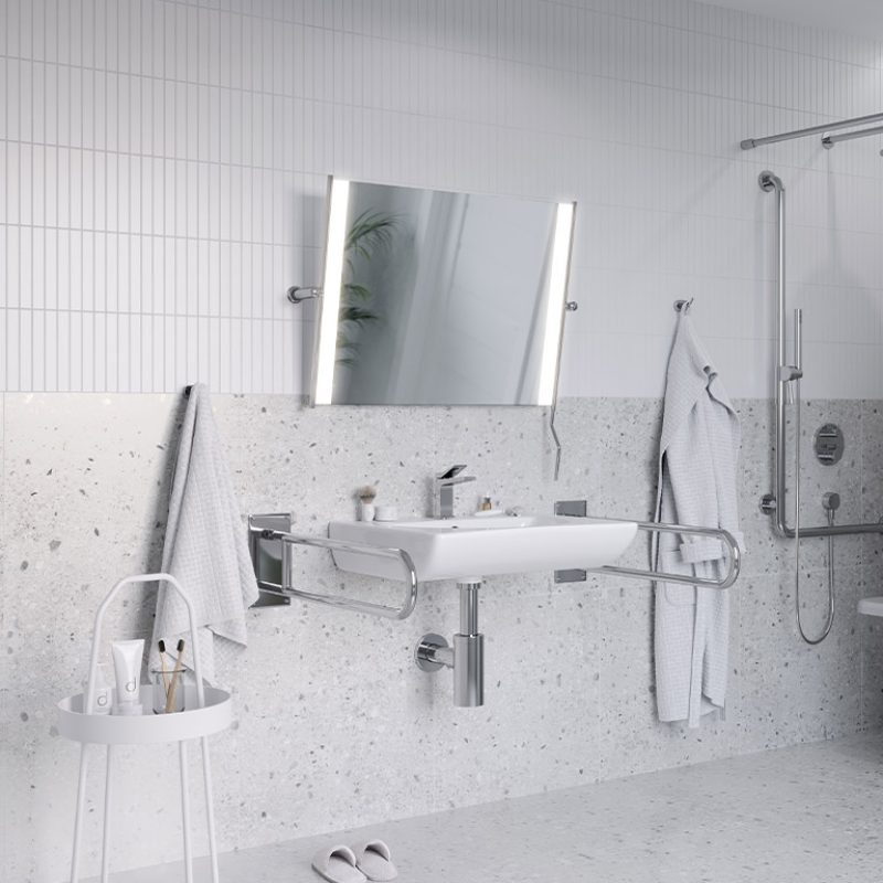 De Med ST Dolino LED is ontworpen voor gehandicapten, ouderen en mensen die slecht ter been zijn. Alle badkamergebruikers kunnen comfortabel navigeren over het spiegeloppervlak.