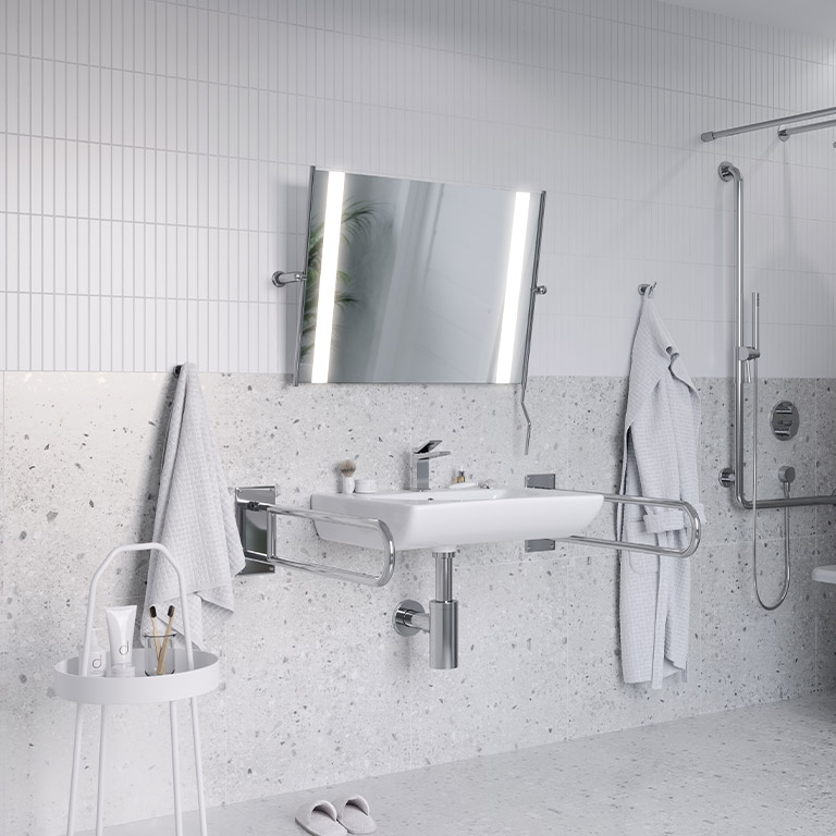 Het Med ST Panorama LED model is ontworpen voor gehandicapten, ouderen en mensen die slecht ter been zijn. Alle badkamergebruikers kunnen comfortabel navigeren over het spiegeloppervlak.