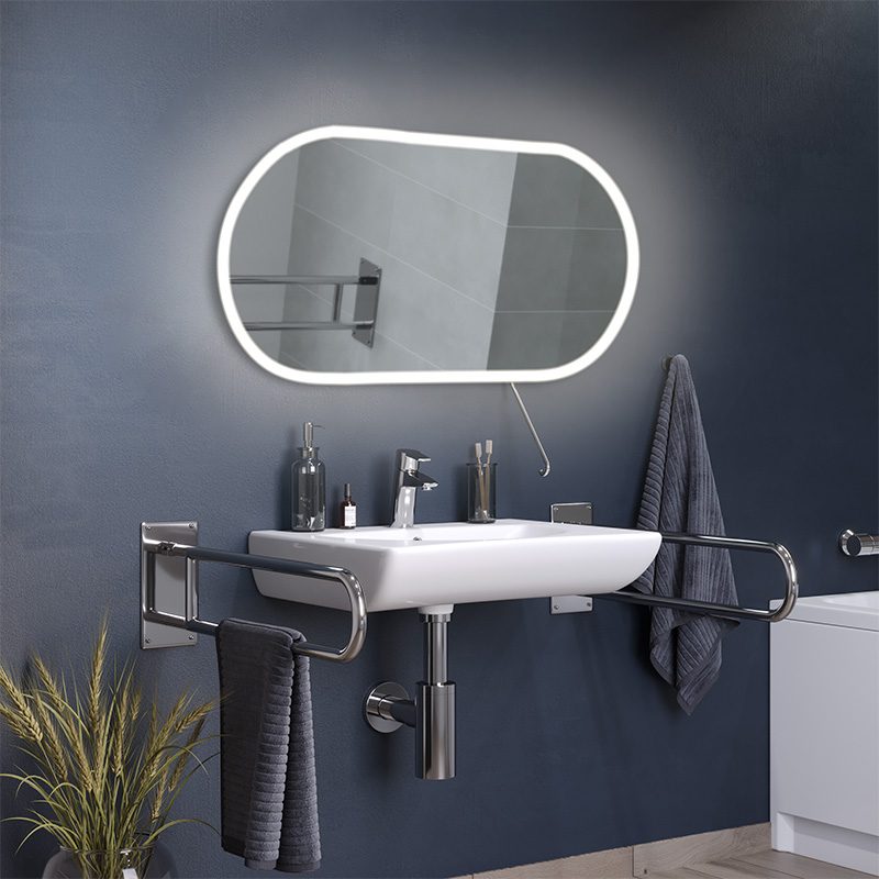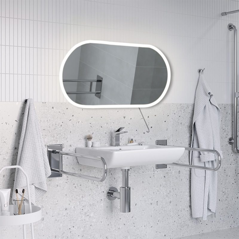 De Koria Slim Med kantelbare badkamerspiegel uit de Med Line collectie van RUKE is een model dat is ontworpen met het comfort van mensen met een handicap in het achterhoofd. Dankzij het slimme ontwerp en de comfortabele handgreep kan de hoek gemakkelijk worden aangepast, wat vooral handig is voor mensen met een beperkte mobiliteit of beweeglijkheid van de bovenste ledematen.