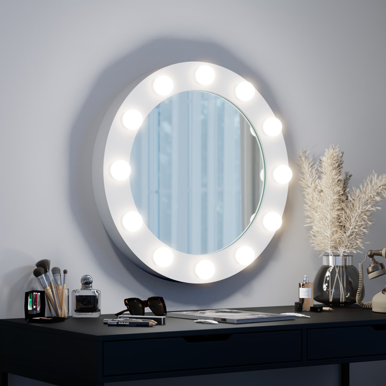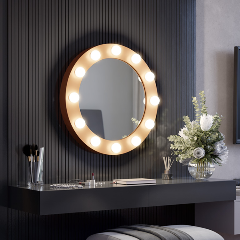 De Hollywood-spiegels zullen alle liefhebbers van perfecte make-up en elegante, functionele accessoires aanspreken. De modellen in deze collectie zijn perfect voor de slaapkamer en kleedkamer, maar ook voor de schoonheidssalon. De Hollywood-spiegels zijn ook een perfect cadeau-idee voor wie houdt van het originele design, bekend van cultfilms uit de hoogtijdagen van de Hollywood-cinema. RUKE Hollywood make-up spiegels maken indruk met hun design en functionaliteit, evenals met de perfectie van hun vervaardiging.