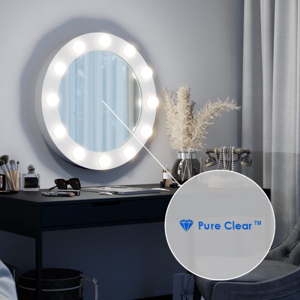 Pure Clear™ is een spiegel die zeer goed bestand is tegen rand- en puntcorrosie. Bovendien is hij vervaardigd met respect voor de planeet en de mens. Dankzij een geavanceerd productieproces is hij vrij van lood en organische oplosmiddelen en de onderverlichting elimineert het effect van oververlichting bij het gebruik van LED-strips.