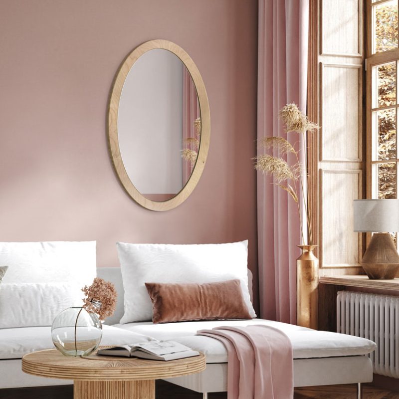 Het Oval Bold model uit de Wood Frame collectie is een interessant voorstel voor wie houdt van eenvoudig design gecombineerd met functionaliteit. De ovale vorm van het spiegelpaneel omgeven door een brede lijst is een perfecte aanvulling voor interieurs die in een minimalistische stijl zijn gehouden.