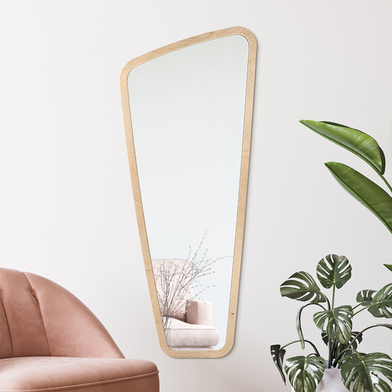 Het model Vitris onderscheidt zich van de andere voorstellen door zijn onconventionele ontwerp. Het is een spiegel met een onregelmatig gevormde lijst, die perfect zal passen in de moderne stijl van interieurs. Het is een perfect decoratief element voor een woonkamer, slaapkamer of inkomhal. Het oppervlak van de spiegel is gevat in een slank frame, dat gemaakt kan zijn van dubbel geolied hardhouten multiplex of watervast MDF, gelakt met een meercomponentenvernis.