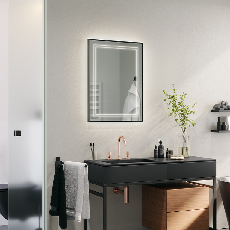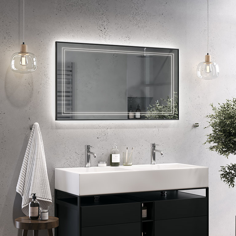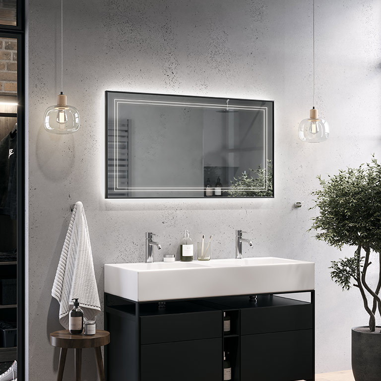 Een spiegel die zeer goed bestand is tegen rondom- en puntcorrosie. Bovendien is hij gemaakt met respect voor de planeet en de mens. Dankzij een geavanceerd productieproces is hij vrij van lood en organische oplosmiddelen, en de onderbelichting elimineert het effect van overbelichting bij gebruik van LED-strips.