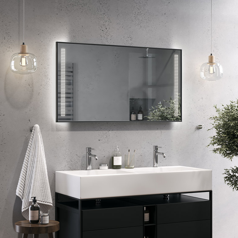 Een spiegel die zeer goed bestand is tegen rondom- en puntcorrosie. Bovendien is hij gemaakt met respect voor de planeet en de mens. Dankzij een geavanceerd productieproces is hij vrij van lood en organische oplosmiddelen, en de onderbelichting elimineert het effect van overbelichting bij gebruik van LED-strips.