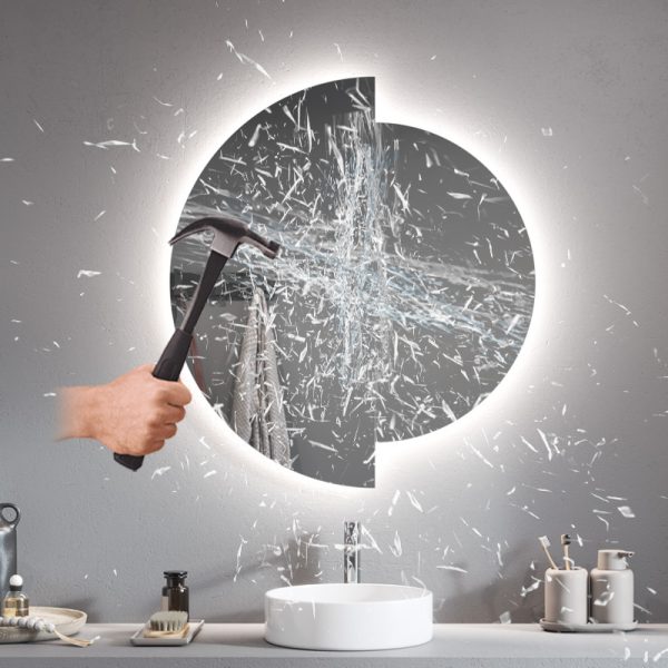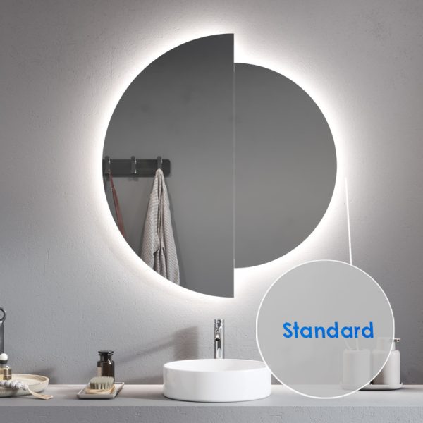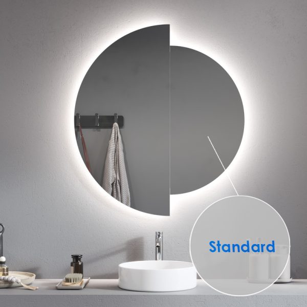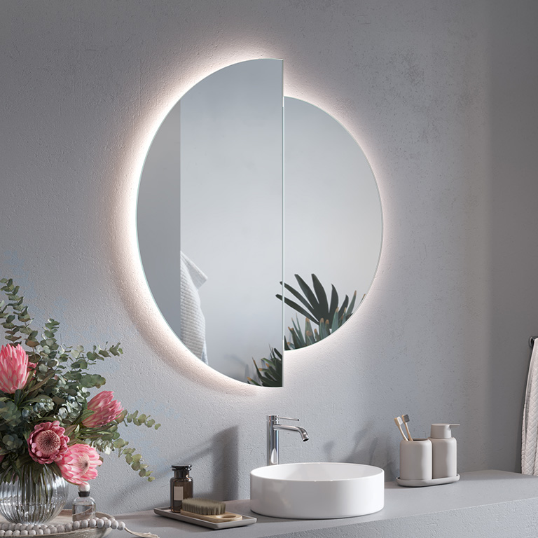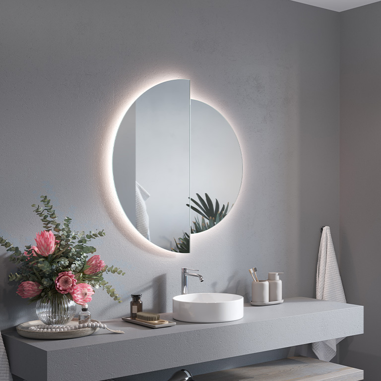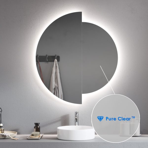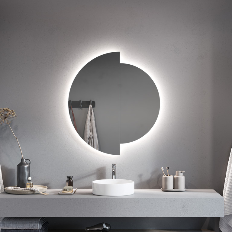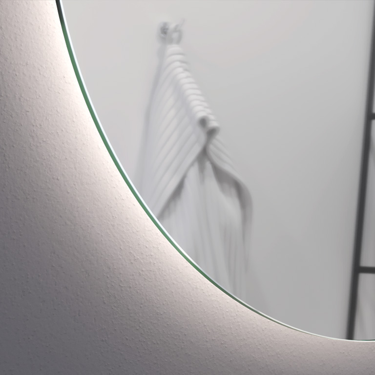 Een spiegel die zeer goed bestand is tegen rondom- en puntcorrosie. Bovendien is hij gemaakt met respect voor de planeet en de mens. Dankzij een geavanceerd productieproces is hij vrij van lood en organische oplosmiddelen, en de onderbelichting elimineert het effect van overbelichting bij gebruik van LED-strips.