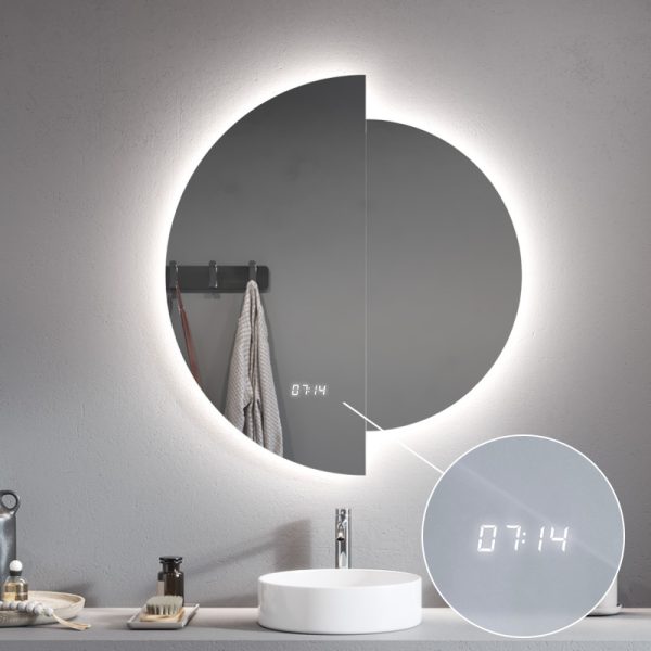 LED digitale klok in wit die bijna overal op de spiegel kan worden gemonteerd, displayformaat 2x5cm. De klok geeft de tijd weer met de optie spiegelschakelaar of wanneer de hoofdverlichting brandt als de spiegel geen schakelaar heeft.