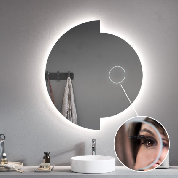 De vergrotende spiegel is een van de meest praktische badkameraccessoires. De spiegel heeft een optimale vergroting van x3 of x5 en een diameter van 14 cm. Hij is glad geïntegreerd in het spiegeloppervlak en vormt er één geheel mee.