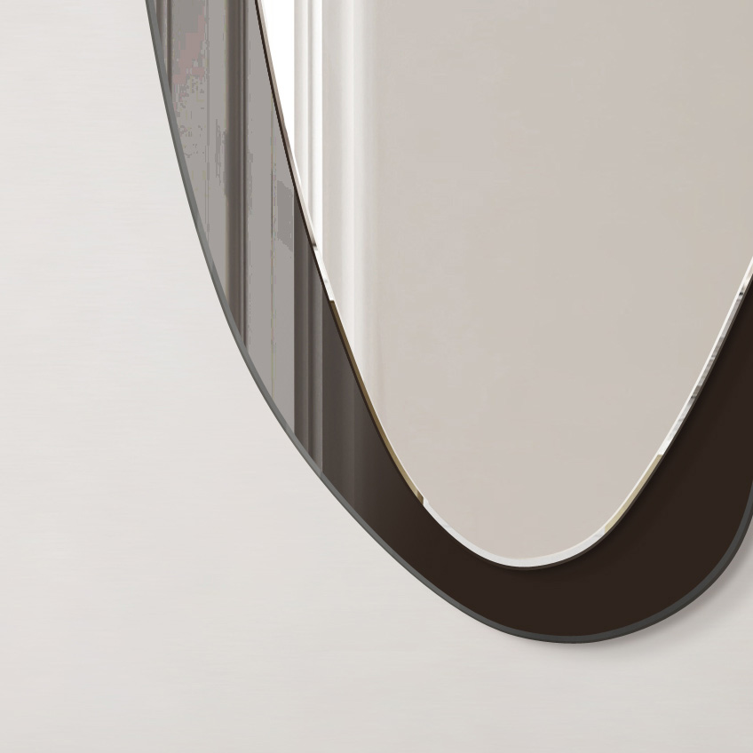 Tweelaags ontwerp: de spiegel bestaat uit twee ruiten met afgeronde vormen, wat zorgt voor lichtheid en stijl.