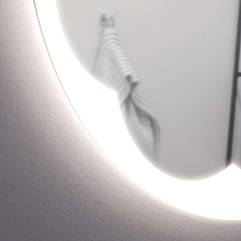 Een spiegel die zeer goed bestand is tegen rondom- en puntcorrosie. Bovendien is hij gemaakt met respect voor de planeet en de mens. Dankzij een geavanceerd productieproces is hij vrij van lood en organische oplosmiddelen, en de onderbelichting elimineert het effect van overbelichting bij gebruik van LED-strips.