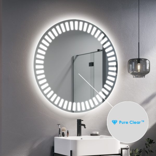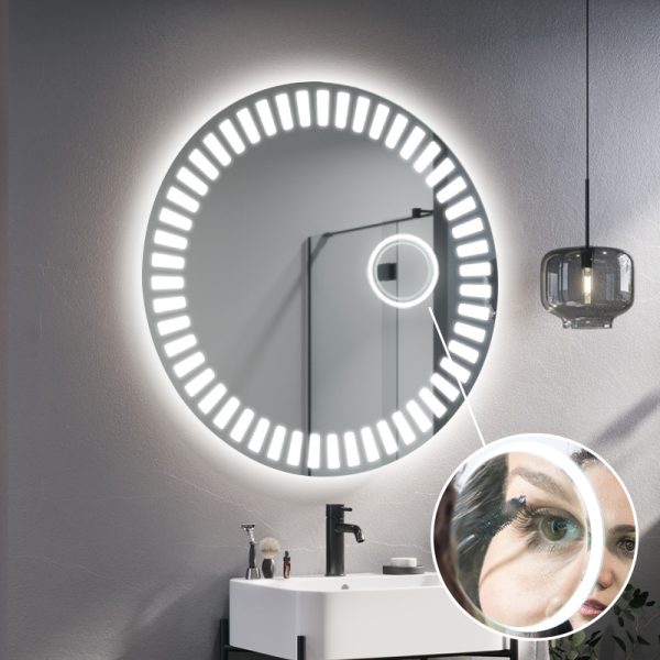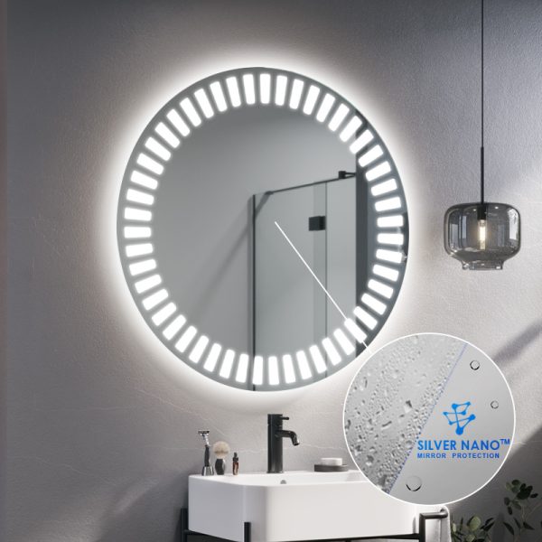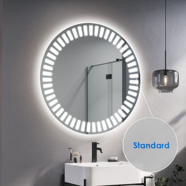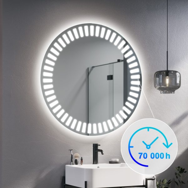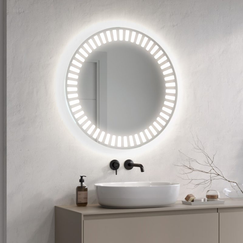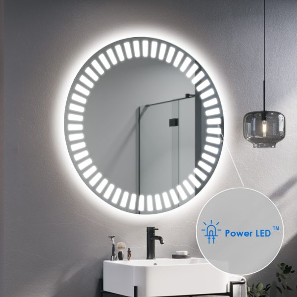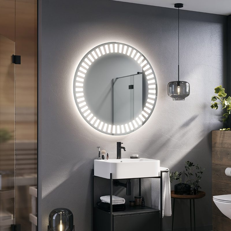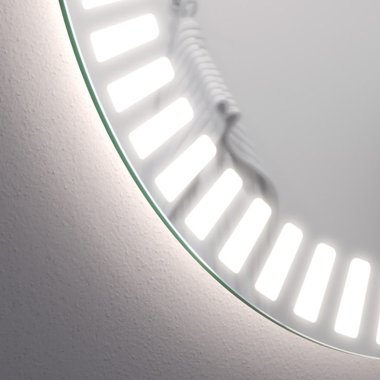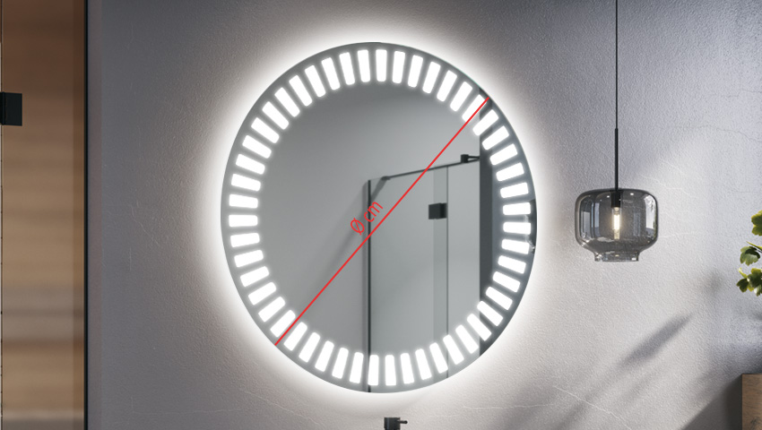De LED badkamerspiegel zal je interieur verlichten. De Hyperion, verlichte ronde spiegel, is de perfecte oplossing voor moderne badkamers met karakter. Afhankelijk van de grootte die je kiest, past hij in zowel grote als kleine ruimtes. Het is ook een geweldige optie voor kleine gangen met kasten, waar het vaak donker is. Dankzij de grote hoeveelheid licht die de LED-strip geeft, kan het model Hyperion deel uitmaken van de kaptafel van een dame. Het zal de kamer een luxe uitstraling geven.