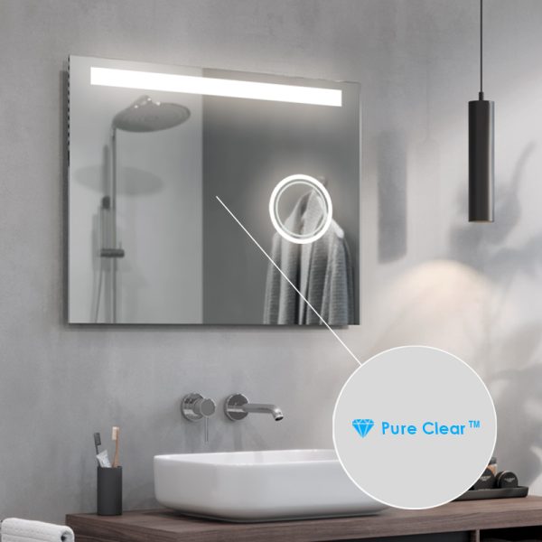 Pure Clear™ is een spiegel die zeer goed bestand is tegen rand- en puntcorrosie. Bovendien is hij vervaardigd met respect voor de planeet en de mens. Dankzij een geavanceerd productieproces is hij vrij van lood en organische oplosmiddelen en de onderverlichting elimineert het effect van oververlichting bij het gebruik van LED-strips.