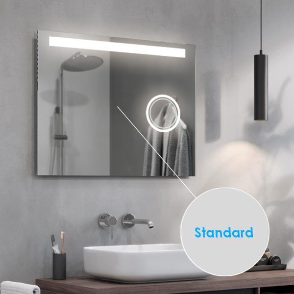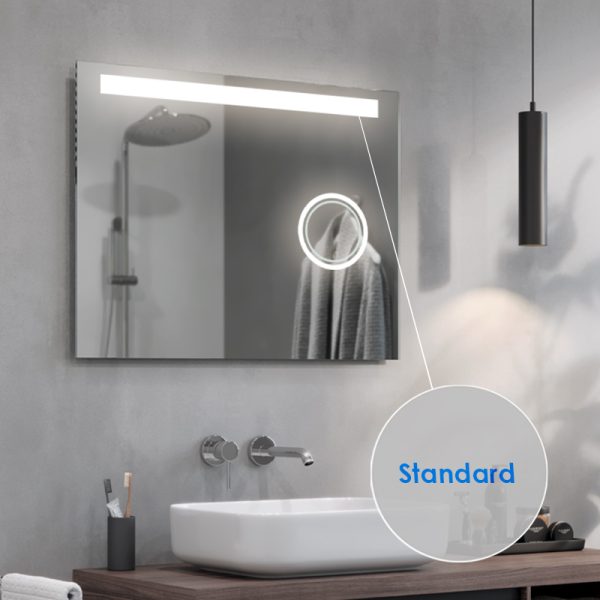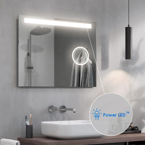 Verzorg jezelf op een nieuwe manier met een LED-spiegel. De 4 cm brede LED-strip aan de bovenkant van de spiegel verlicht je gezicht effectief tijdens behandelingen zoals scheren of make-up. Dankzij het gebruik van de POWER LED-technologie, waarbij de krachtigste LED’s en een speciaal ontwerp worden gebruikt, is de lichtopbrengst 100% hoger dan die van gewone spiegels met achtergrondverlichting. U kunt dus genieten van meer precisie bij uw dagelijkse activiteiten.