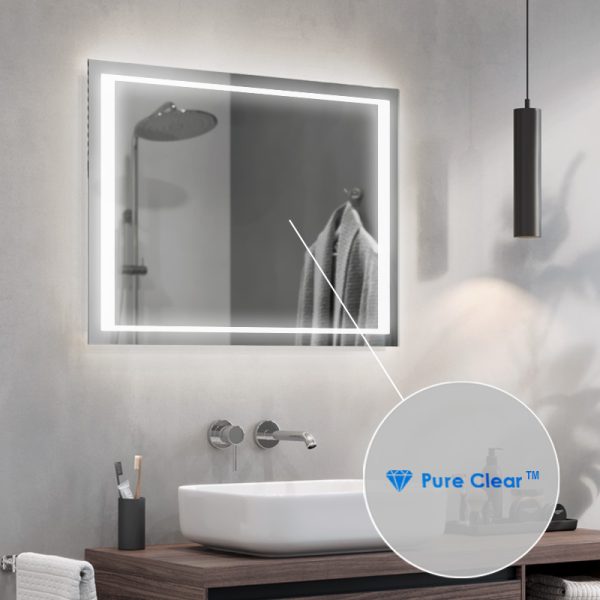 Pure Clear™ is een spiegel die zeer goed bestand is tegen rand- en puntcorrosie. Bovendien is hij vervaardigd met respect voor de planeet en de mens. Dankzij een geavanceerd productieproces is hij vrij van lood en organische oplosmiddelen en de onderverlichting elimineert het effect van oververlichting bij het gebruik van LED-strips.