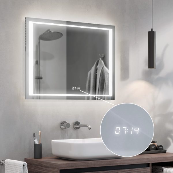 LED digitale klok in wit, kan bijna overal op de spiegel worden gemonteerd, displayformaat 2x5cm. De klok geeft de tijd weer met de optie spiegelschakelaar of wanneer de hoofdverlichting brandt als de spiegel geen schakelaar heeft.