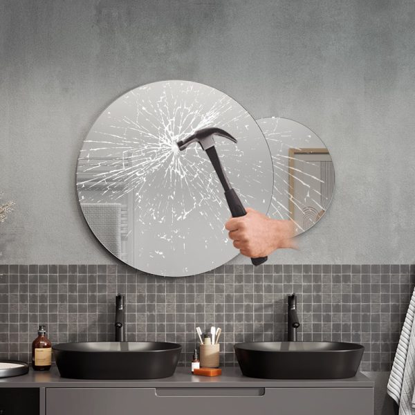 Een goedgekeurde veiligheidsfolie die over de hele achterkant van de spiegel is aangebracht, minimaliseert het risico op letsel als de spiegel breekt.