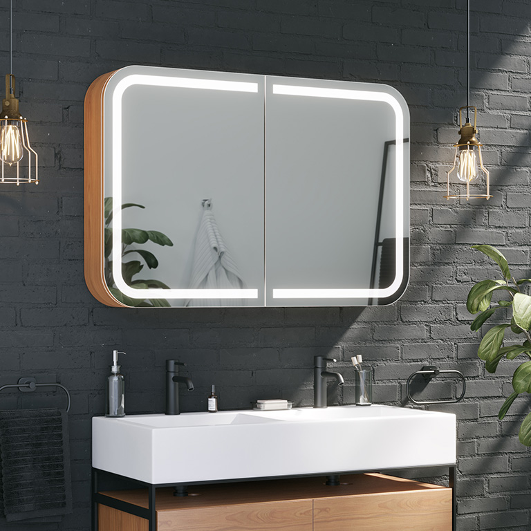 RUKE staat al meer dan 30 jaar synoniem voor elegantie en functionaliteit. Kies voor een luxueuze en originele spiegel met LED-verlichting in een houten frame, die in het oog springt en karakter geeft aan je interieur.