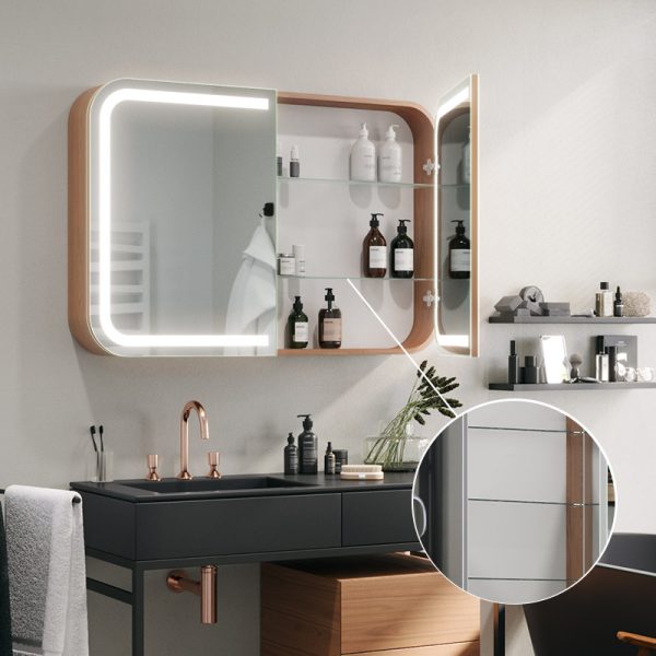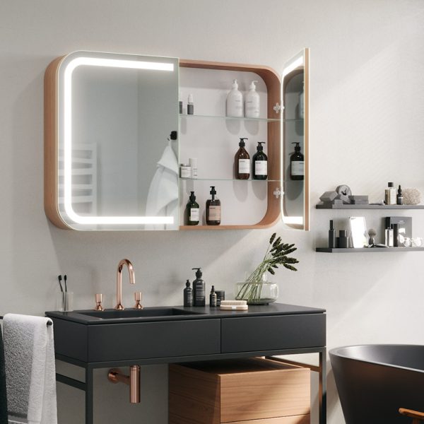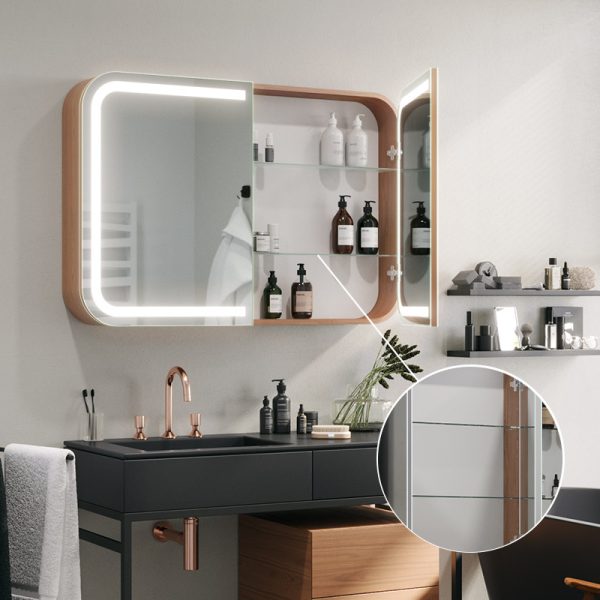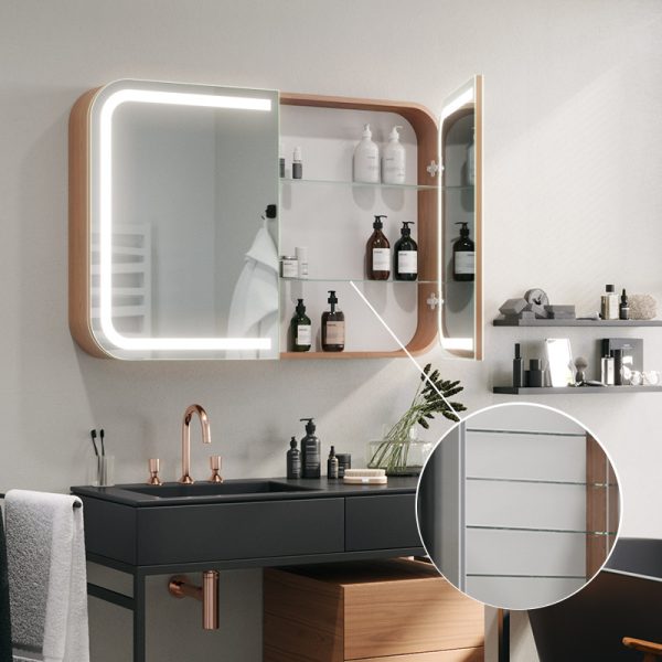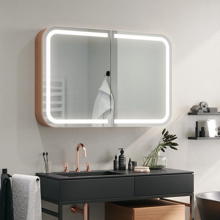 De Bolivia Multi spiegelkast is het toppunt van stijl en functionaliteit. De licht afgeronde hoeken geven hem een subtiele touch, terwijl de LED-strips die over het hele oppervlak lopen voor extra licht zorgen tijdens de dagelijkse verzorging.