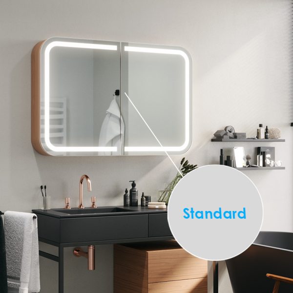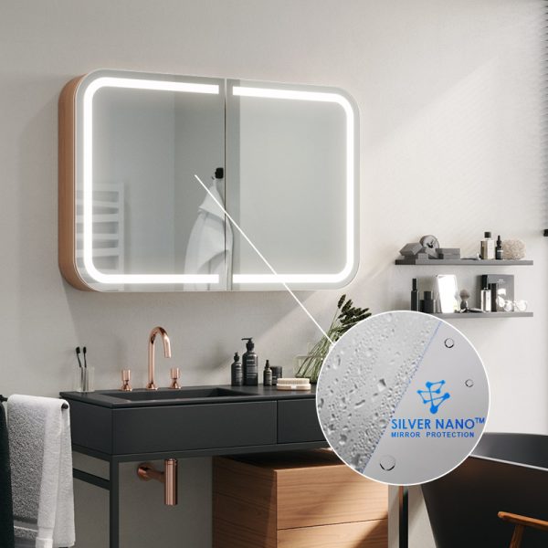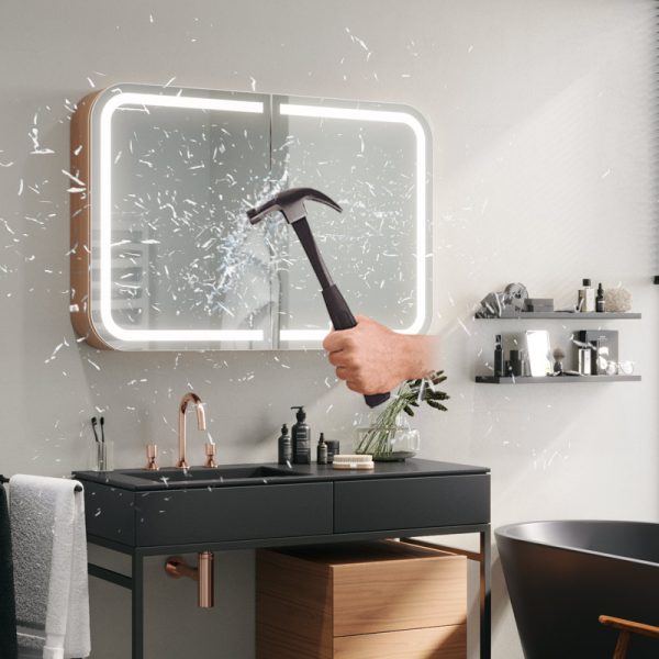 Een spiegel die zeer goed bestand is tegen rondom- en puntcorrosie. Bovendien is hij gemaakt met respect voor de planeet en de mens. Dankzij een geavanceerd productieproces is hij vrij van lood en organische oplosmiddelen, en de onderbelichting elimineert het effect van overbelichting bij gebruik van LED-strips.