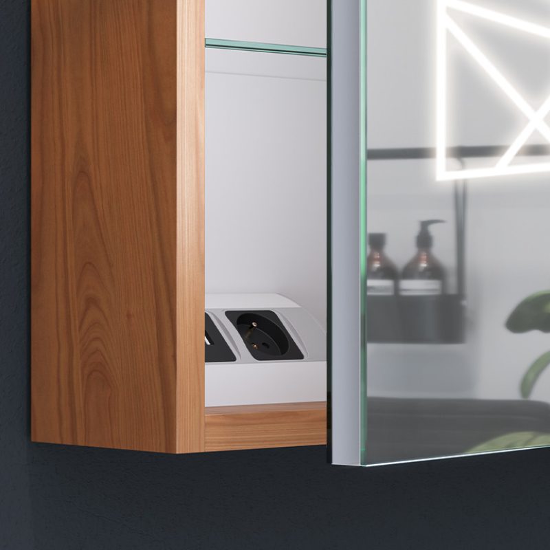 De badkamerspiegel met kastje en LED-verlichting is een uiterst praktisch stuk badkameruitrusting. Het combineert de functionaliteit van een meubel en een spiegel, zodat je je cosmetica en andere kleine voorwerpen kunt opbergen en je dagelijkse schoonheidsroutines kunt uitvoeren. Het spiegelfront vervangt de traditionele spiegel, zodat de ruimte boven de wastafel goed wordt benut. De moderne en energiezuinige LED-verlichting is een aanwinst, waardoor dit meubel de badkamer verlicht en een gezellige sfeer creëert. Dankzij de hoge kwaliteit en de esthetische afwerking kun je met de RUKE badkamerspiegelkast een originele opstelling maken.