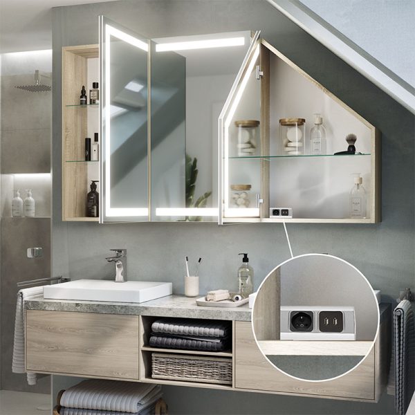Het LED Lucy MULTI verlichte badkamermeubel is een zeer functionele en innovatieve oplossing voor je badkamer. Dankzij het innovatieve ontwerp berg je er niet alleen je cosmetica in op, maar verlicht je ook elke dag de ruimte en je gezicht.