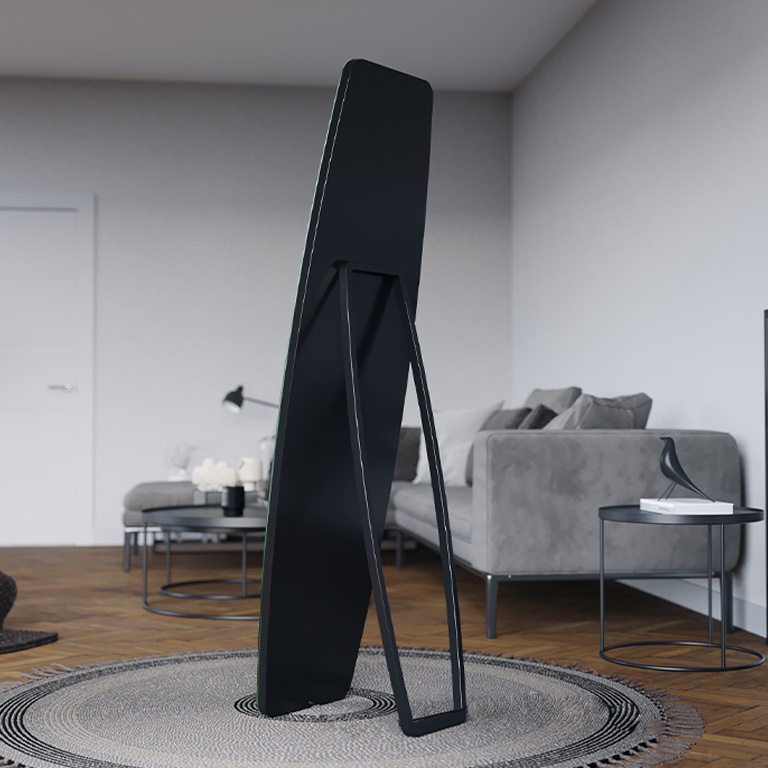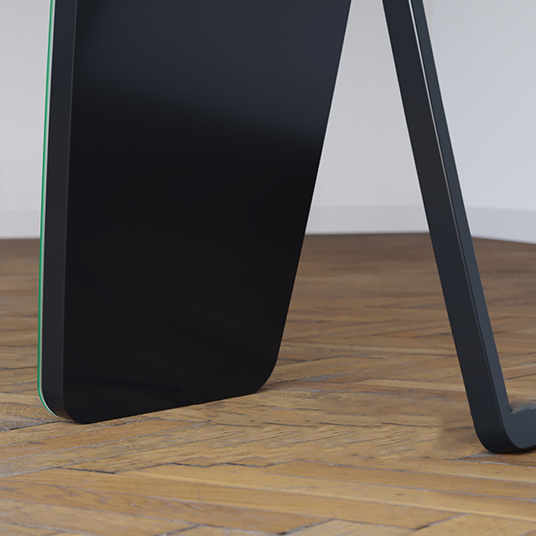 Met het functionele frame met standaard kun je de hoek van het frame met de spiegel aanpassen voor de best mogelijke reflectie. De mogelijkheid om de hoek onafhankelijk aan te passen geeft ons de zekerheid dat we altijd tevreden zullen zijn met de spiegel.