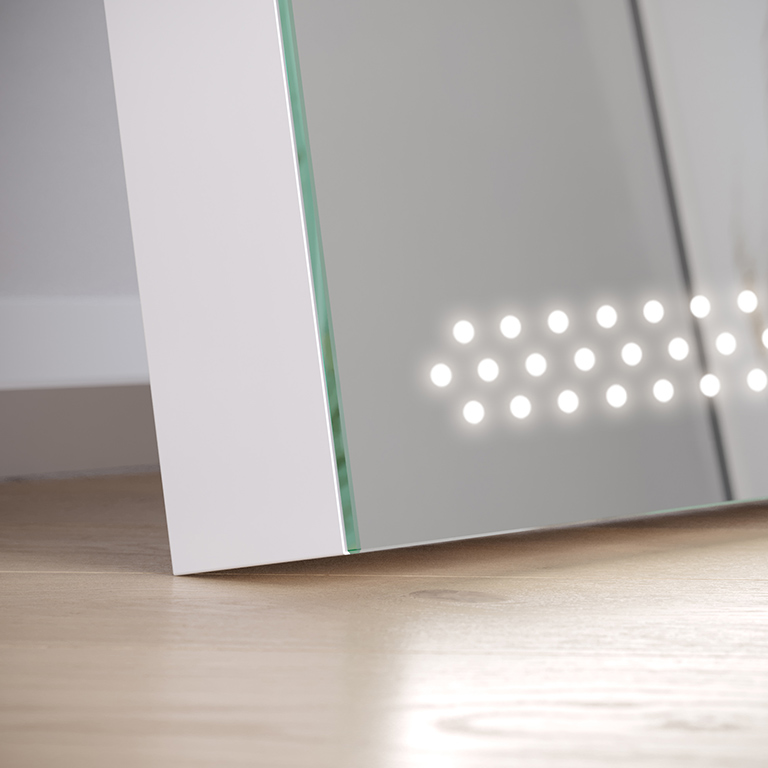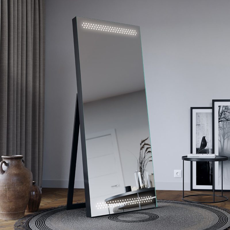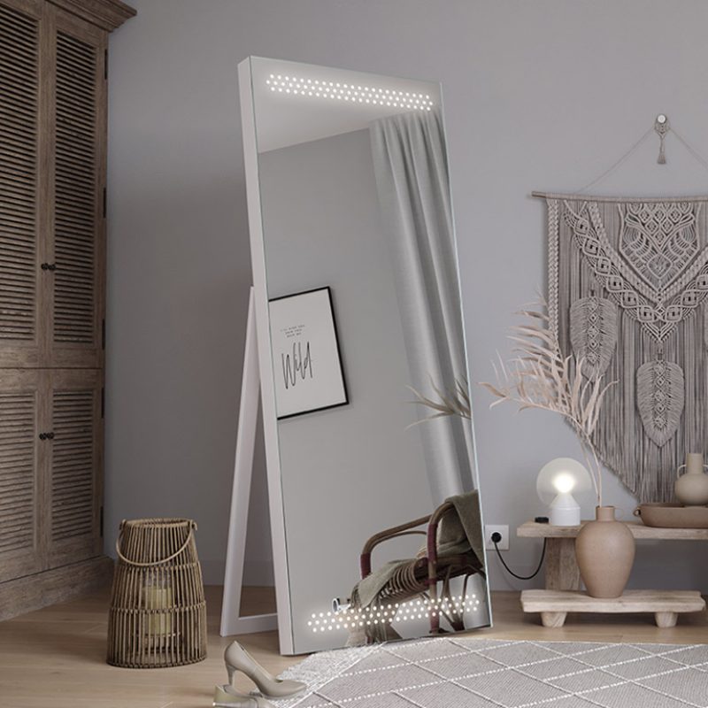 Als je op zoek bent naar een grote LED-spiegel waarin je gemakkelijk de reflectie van je hele silhouet kunt zien, kijk dan eens naar ons voorstel – de Otros staande spiegel. Het is een stijlvolle decoratie en een functioneel meubelstuk dat het moderne design van je huis zal onderstrepen.