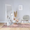 De vrijstaande spiegel Otros is niet alleen een origineel interieurelement, hij is ook praktisch. De verticale LED-strips aan weerszijden van het blad verlichten je spiegelbeeld gelijkmatig – zelfs in de schemering zie je elke zandkorrel op je kleding.